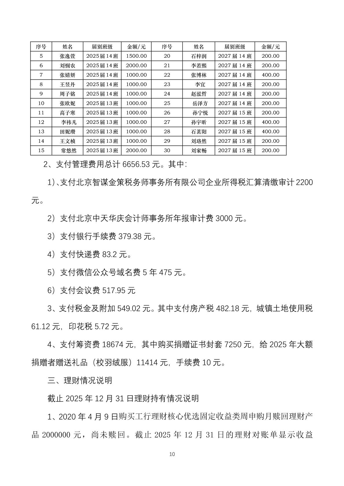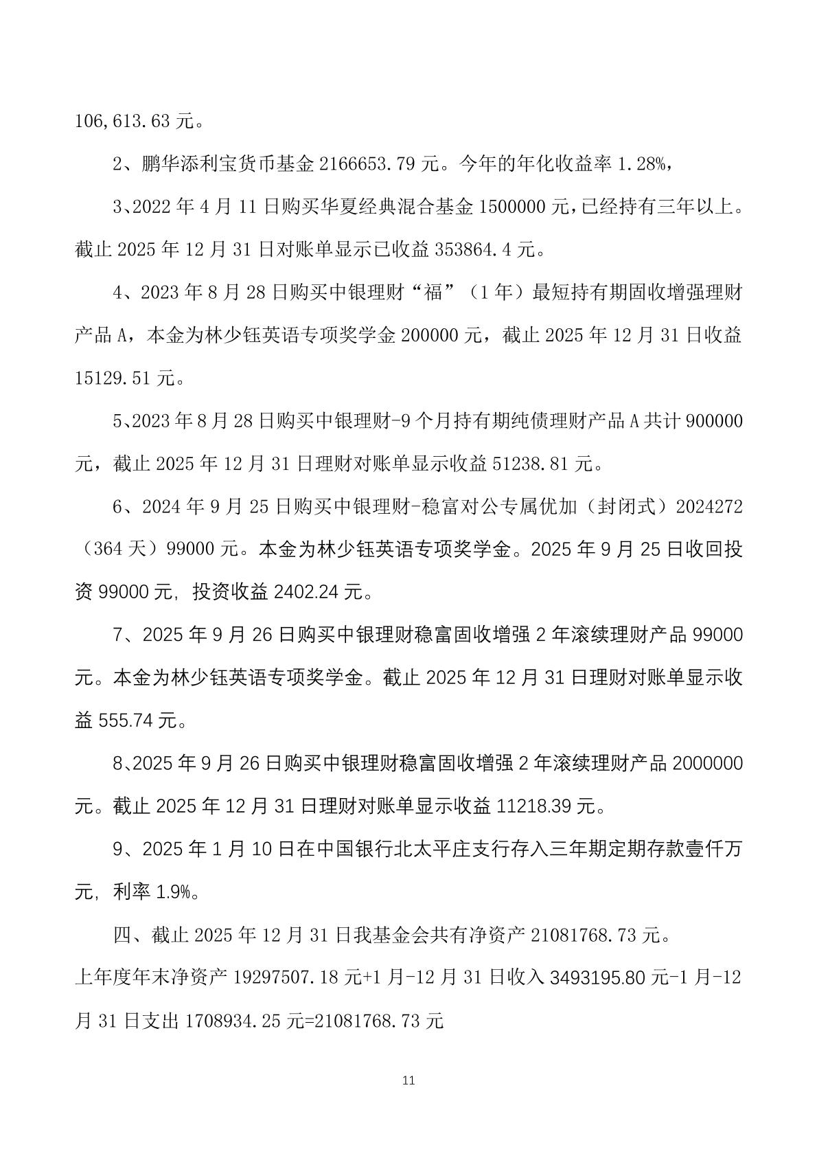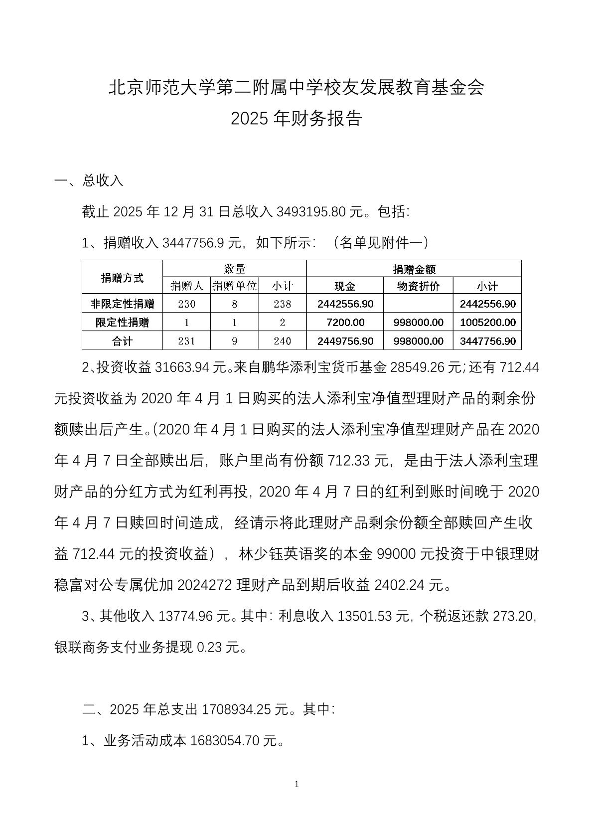 北京师范大学第二附属中学校友发展教育基金会 2025年财务报告
