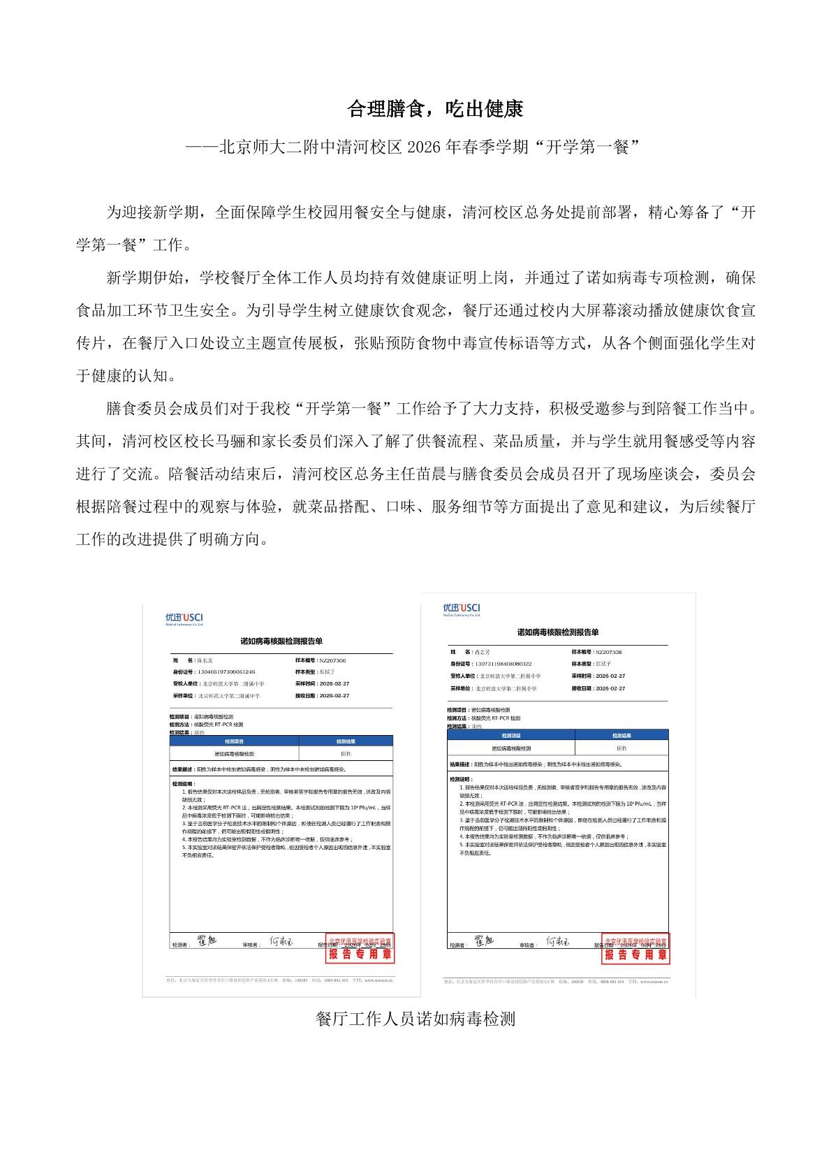 合理膳食,吃出健康 ——北京师大二附中清河校区2026年春季学期“开学第一餐”